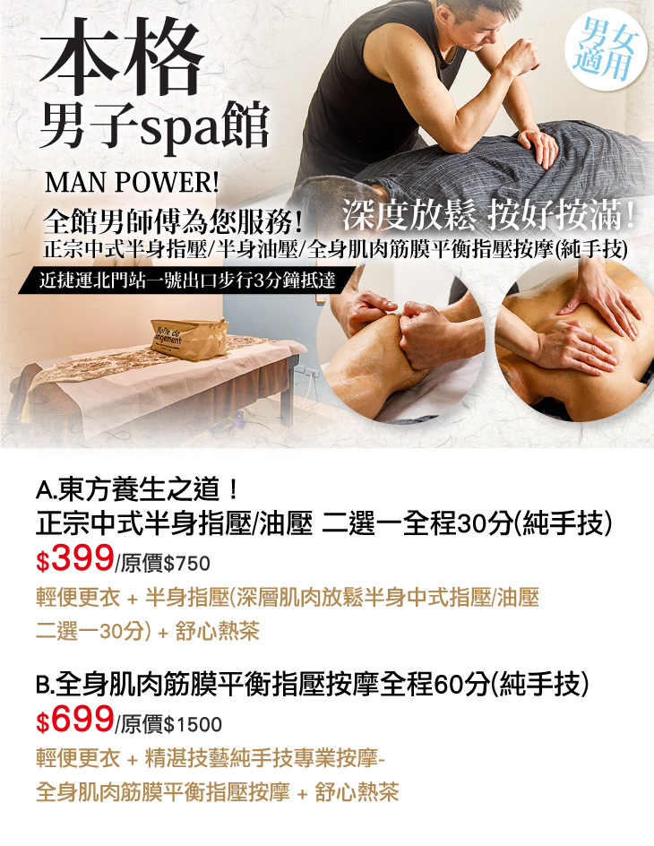 【本格男子spa館】感謝麻吉們熱烈搶購,已全數賣光光。