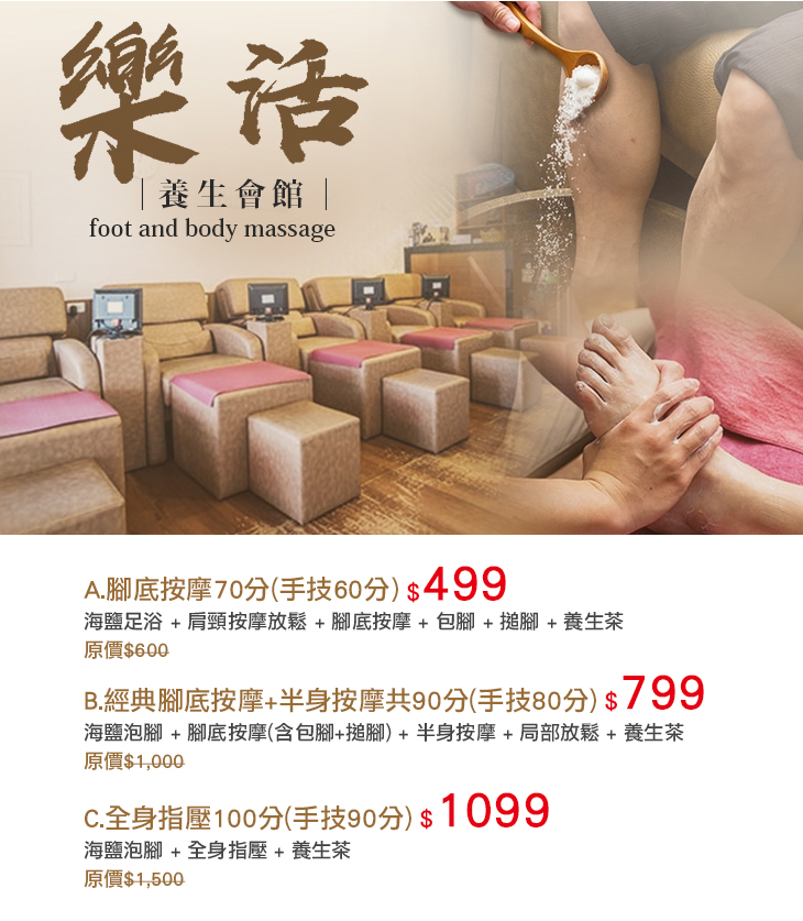 B.經典腳底按摩+半身按摩共90分(手技80分)