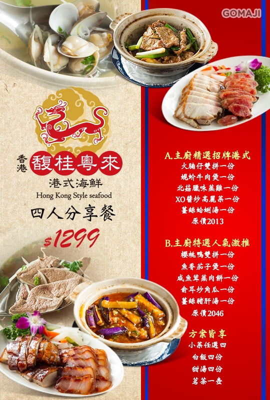 A方案:主廚精選招牌港式四人分享餐