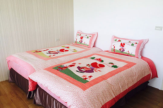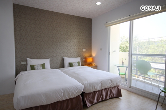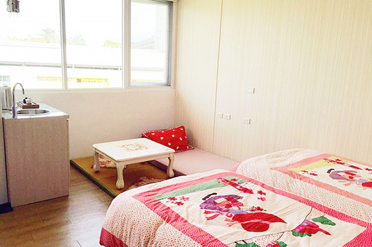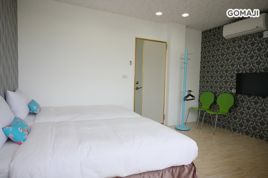房內提供自然農法冷泡茶可以清熱解渴,純白的床鋪、棉被、枕頭都經日曬殺菌,