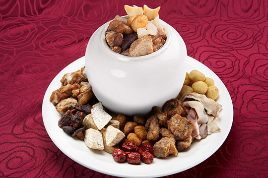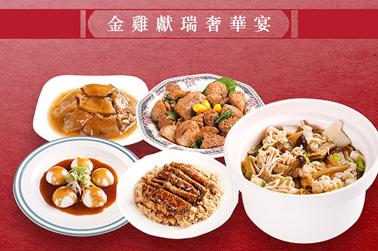 吉祥十全大補湯一份 + 原盅三杯猴頭菇一份 + 花團錦簇玉芙蓉一份 + 素蒲香鰻肚油飯一份 + 錦繡翡翠冬瓜封一份