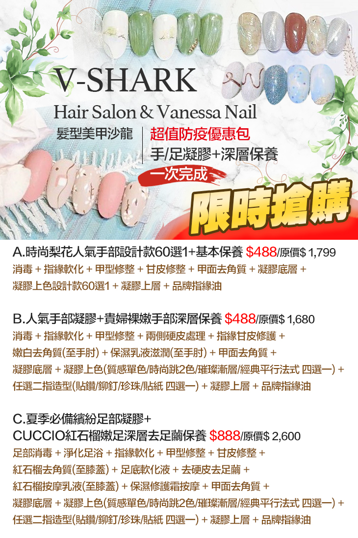 【V-SHARK Hair Salon & Vanessa Nail髮型美甲沙龍】感謝麻吉們熱烈搶購,已全數賣光光。