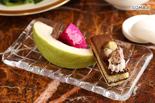 鮑魚蔬果和風一份 + 明太子烤龍蝦一份 + 金沙吉利嫩腿一份 + 白玉如意魚捲一份 + 碧綠蠔皇鮮筍一份 + 加拿大鮭魚炒飯一份 + 枸杞大蛤雞塊盅一盅 + 老甘蔗冰沙一杯 + 主廚特製法式糕點一份 + 時令新鮮水果一份