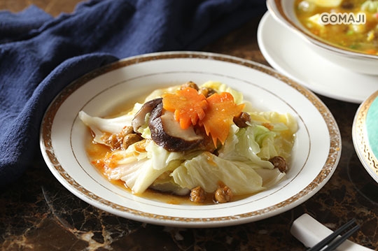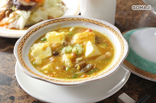 橙黃的蟹黃豆腐,吃來香滑綿稠,鹹中帶鮮,另具風味。這道菜爽滑可口,细嫩、色彩明亮,海鮮與豆腐富蛋白質又低熱量,是道極富營養價值的料理。
