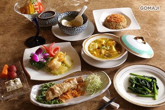 山藥蔬果和風沙拉一份 + 鳳梨果律蝦球一份 + 金沙吉利嫩腿一份 + 蟹黃老皮嫩豆腐煲一份 + 加拿大鮭魚炒飯一份 + 薑絲大蛤蠣湯一份 + 季節時蔬一份 + 主廚特製甜點一份 + 時令新鮮水果一份