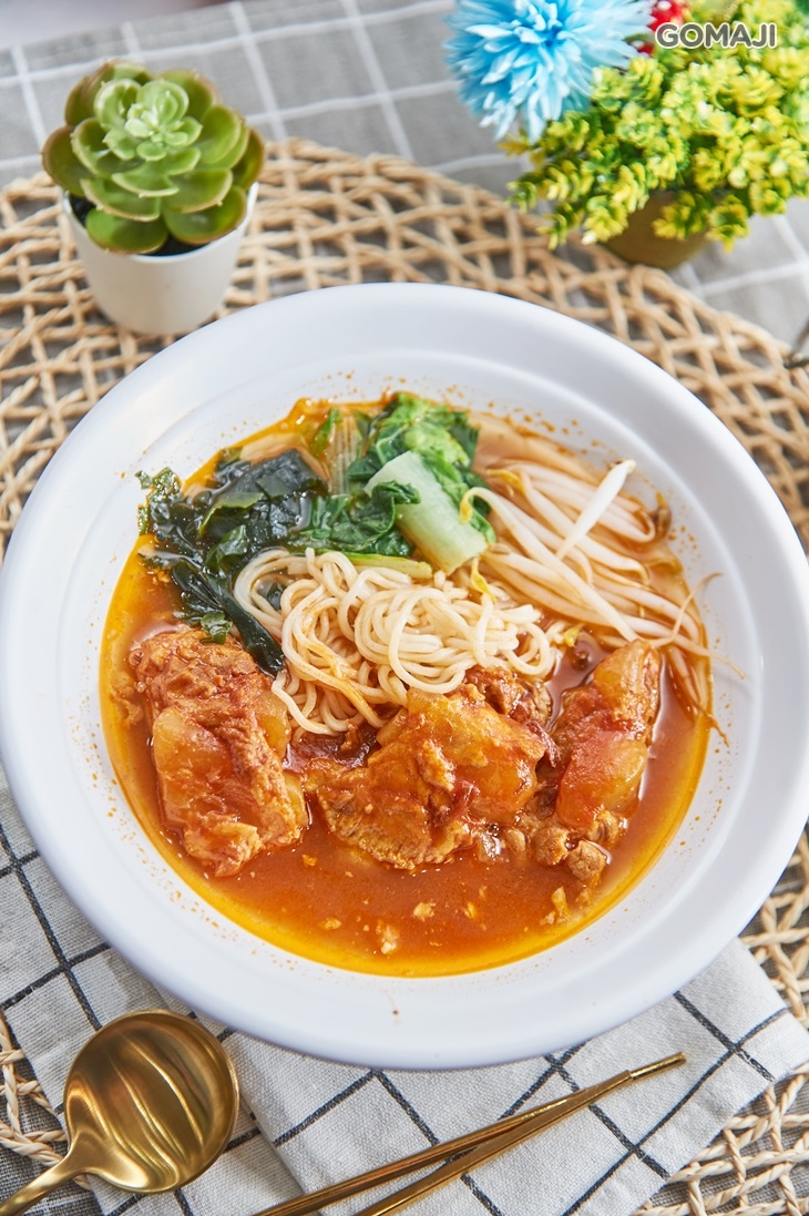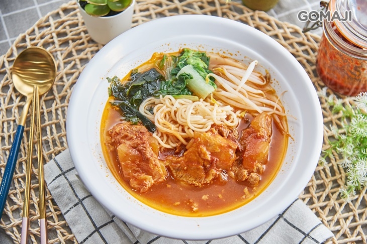 店家招牌NO.1!營養滿分的蕃茄排骨麵,選用帶軟骨的排骨經由新鮮蕃茄熬煮去膩,湯頭底蘊帶有蕃茄的酸甜,口感清爽卻不失濃郁,配上Q彈帶勁的麵條與軟嫩的排骨,吃得到食材原味,美味兼具健康!