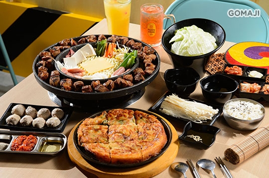 一鍋二吃!使用韓國傳統的鑄鐵黑鍋,新鮮的韓國烤肉,吃得到燒肉的鮮甜與外皮焦脆口感!內鍋就是豐富誘人的部隊鍋,湯濃、麵Q!當熱騰騰的濃湯融化了在Q麵上面的起司片後,一口吸允飽滿湯汁的麵條,滿口都是濃郁的起司味道與濃湯的香氣,超幸福!