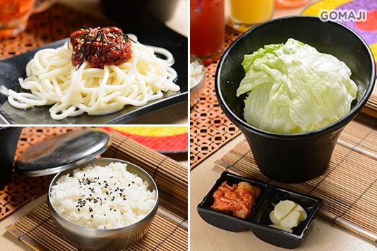 ✔ 烏龍麵/白飯/生菜 (附泡菜+蒜片)