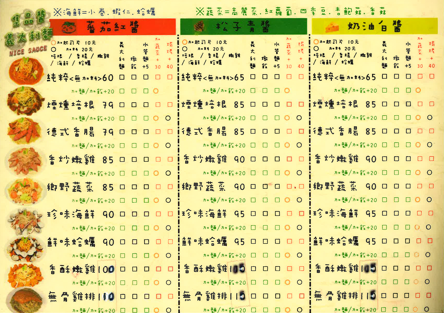 秉持新鮮食材、品質把關,讓每樣餐點都是經過歷練的調味,並自製獨特手作醬汁來詮釋「醬乃是食物的靈魂」。除了有濃郁奶油白醬、松子青醬、蕃茄紅醬、義式咖哩、蒜香清炒之外,還有特製經典醬系列的超人氣「奶香魔菇花椰雞麵」秘方調配奶香黑胡椒搭配魔菇熬煮的必點推薦餐點!並貼心提供素食風味餐點,讓吃素的朋友也可來店享用!