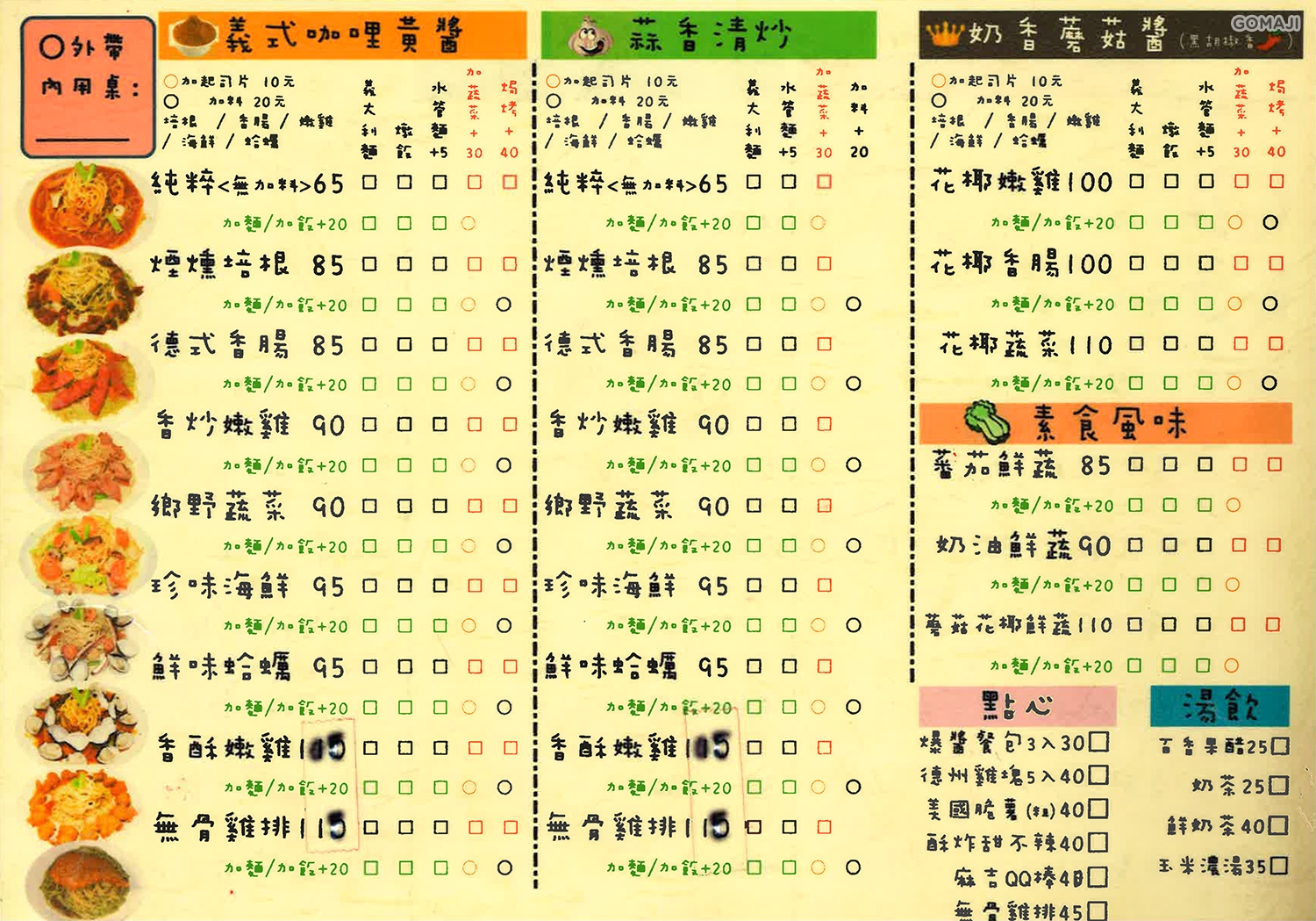 ✔ 咖哩香野蔬菜義大利麵