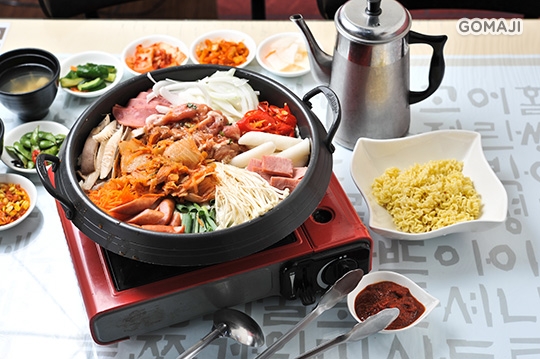 傳統部隊鍋/辣炒雞腿鍋/銅盤烤肉 三選一 + 海鮮煎餅/泡菜煎餅 二選一,銅盤烤肉可選:豬肉/雞肉/牛肉 三選一 + 每日小菜六份