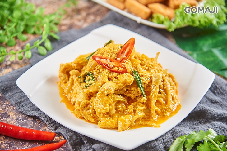 特選鮮嫩雞,再佐以泰式料理最常見的黃金咖哩烹飪烹調,黃澄澄在盤上散發耀眼光芒的佳餚菜色,讓人不禁胃口大開!入口肉嫩醬香,單吃或配上白飯,道地又下飯啊!