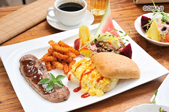 (牛小排 夏巴達麵包 法式滑蛋 薯條 德式香腸 田園沙拉 時令蔬菜 湯品 飲料)’