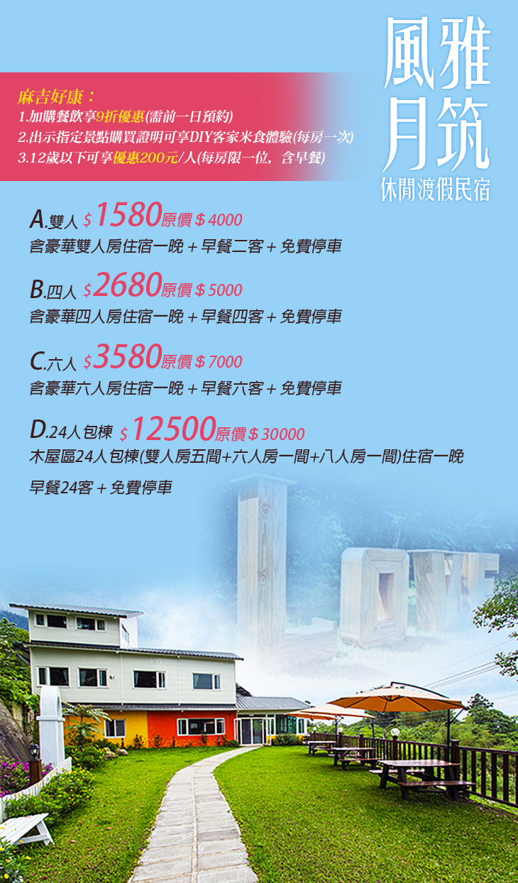 【新竹風雅月筑休閒渡假民宿(五峰館)】感謝麻吉們熱烈搶購,已全數賣光光。