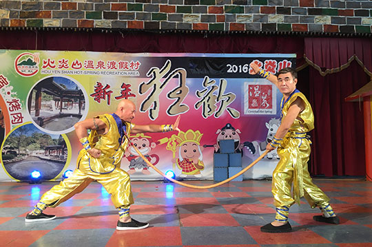 火炎山西遊記是您小時候的回憶,這次特別讓西遊記中幾位主角成為真人版,和遊客一起相見歡,演出我們的西遊小短劇,並與外蒙古國家馬戲團的成員及少林硬氣功和雙變臉同台拼技藝,精彩可期,絕無冷場,千萬別錯過!大年初一至初五特別邀請<楚留香裡的無花和尚>影星關聰(飾唐三藏)駐園演出,帶領著他的弟子少林寺31代嫡傳弟子-釋德藏(飾孫悟空)演員陳平安(飾豬八戒)陳新安(飾沙悟淨)一同來拜年。