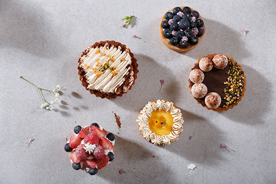 由自家烘焙坊專業甜點師設計的獨家口味,伴隨奶油香氣的酥脆塔皮,搭配微酸的檸檬奶醬、苦甜生巧克力內餡,或在卡士達醬上擺放當季新鮮水果,不定時推出限定限量塔點,是視覺與味覺雙享受的最佳下午茶。