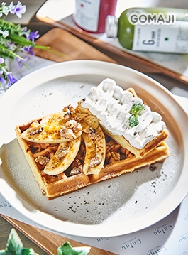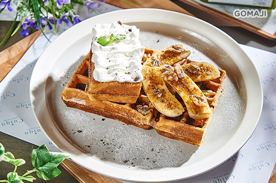 採用有機紅蛋與新鮮牛奶,烘烤後散發微微的奶香,蓬鬆酥脆的口感,擺上新鮮水果與甜淋醬,外表可愛且可口,若不愛甜食,另提供鹹食鬆餅可作為選擇。特別推薦:巧克蕉糖卡滋卡滋。