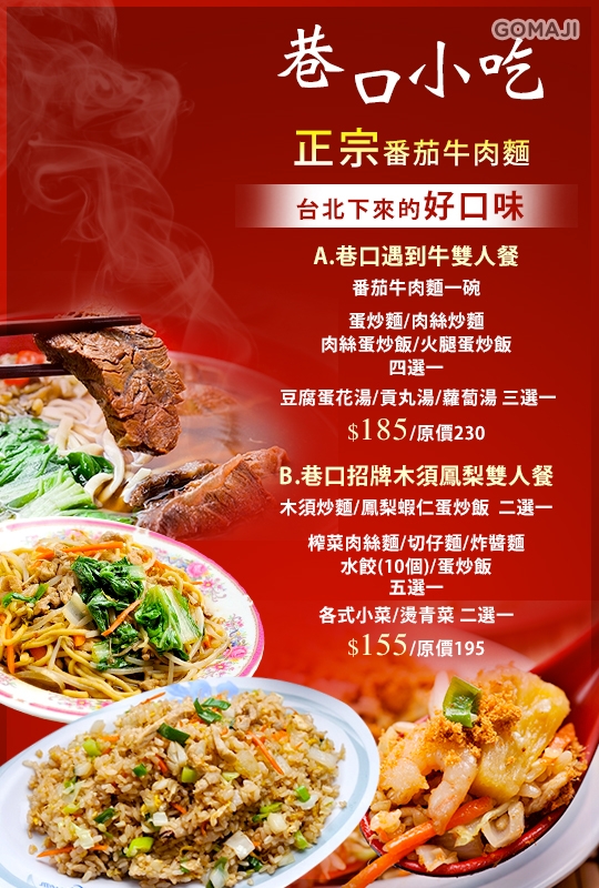 A.巷口遇到牛雙人餐 / B.巷口招牌木須鳳梨雙人餐