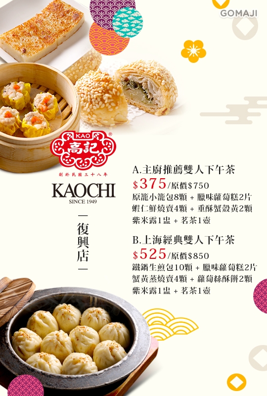 超過一甲子的好味道!口味道地,手藝精湛,每日嚴選新鮮食材,為賓客呈現精緻上海點心和精緻江浙美饌,用餐儼然變成了一種享受。帶動了台北市的上海點心風潮,今天許多點心店的老闆,早年都是高記的學徒。