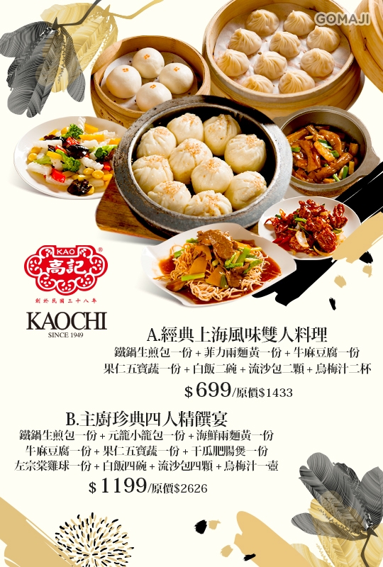 超過一甲子的好味道!口味道地,手藝精湛,每日嚴選新鮮食材,為賓客呈現精緻上海點心和精緻江浙美饌,用餐儼然變成了一種享受。帶動了台北市的上海點心風潮,今天許多點心店的老闆,早年都是高記的學徒。