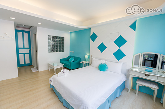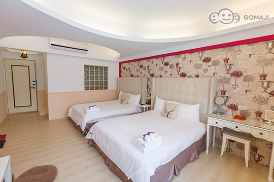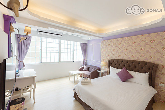 寬敞舒適的雙人房,簡單的空間隔局,搭配典雅的裝潢設計,置入頂級、舒適的寢具及完善、夢幻的家具設備,打造出溫馨簡易的住宿環境。
