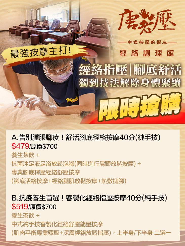 B.抗疫養生首選!客製化經絡指壓按摩40分(純手技)