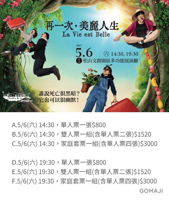 【【沙丁龐客劇團】再一次・美麗人生La Vie est Belle 2】感謝麻吉們熱烈搶購,已全數賣光光。