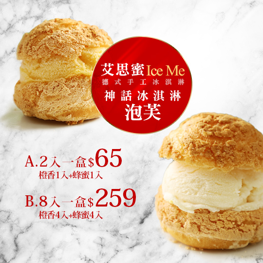A.神話冰淇淋泡芙(2入)一盒 口味:橙香1入+蜂蜜1入