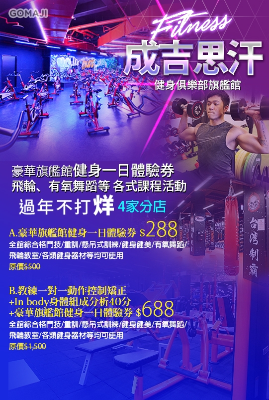 愛美的女孩男孩們趕緊換上運動服,到〝成吉思汗健身俱樂部旗艦館〞用力甩肉肉囉!無論是飛輪、各式的健身器材等,讓您盡情專注在享受流汗的過程,快揪親朋好友一塊來,想要擁有傲人的身材再也不是夢想!