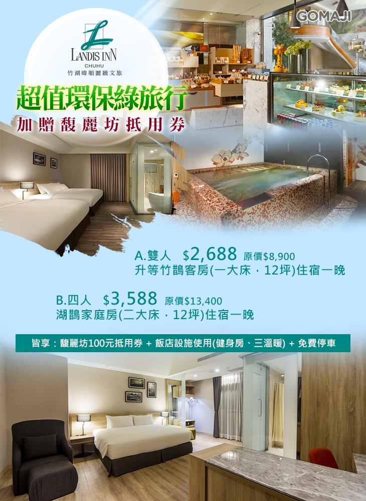 ★ 超值環保綠旅行住房,再加碼贈送馥麗坊抵用券,美味麵包讓您帶著走!