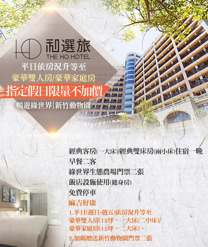 ★ 專案附翌日豐盛早餐及綠世界門票,再加碼送新竹動物園門票,跟家人朋友秋爽輕旅行正是時候。