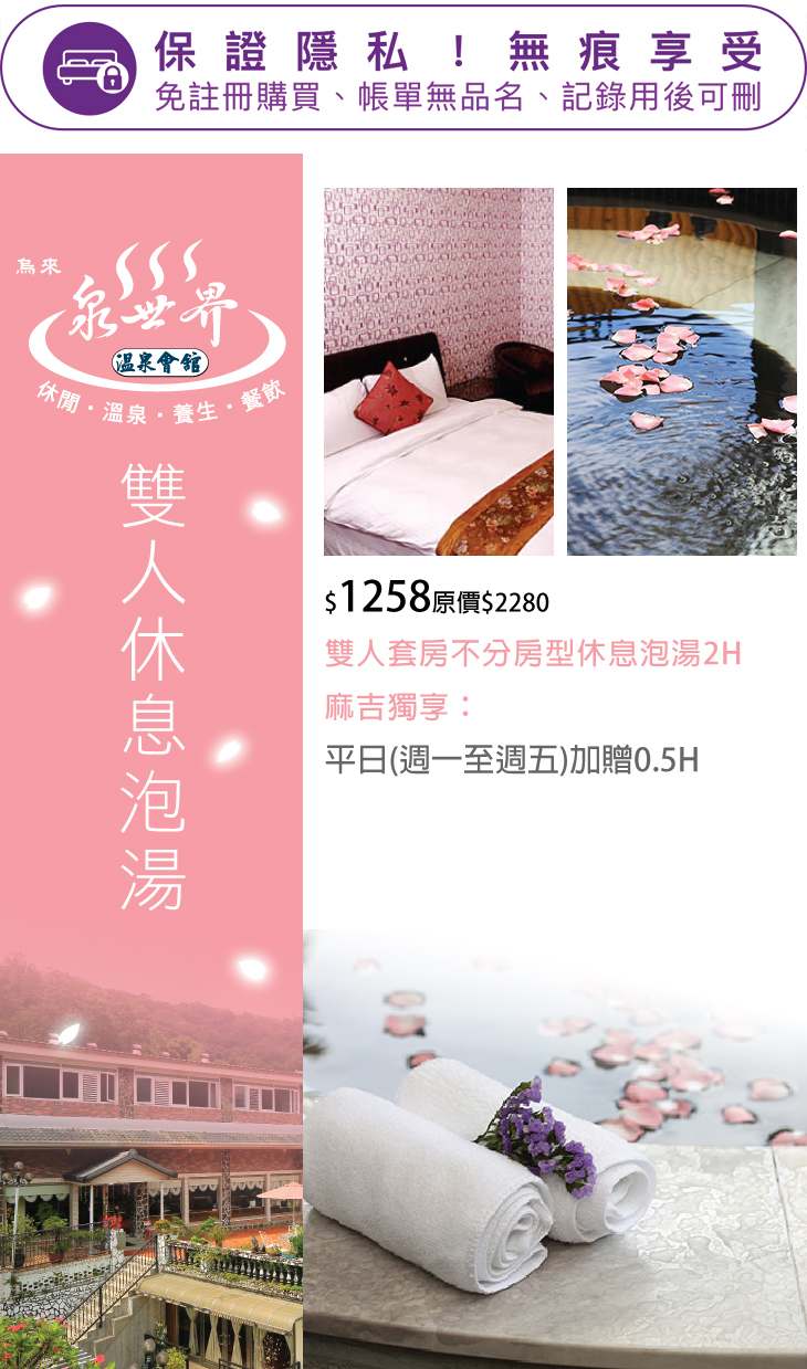 【烏來-泉世界溫泉會館】感謝麻吉們熱烈搶購,已全數賣光光。