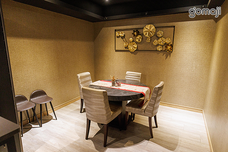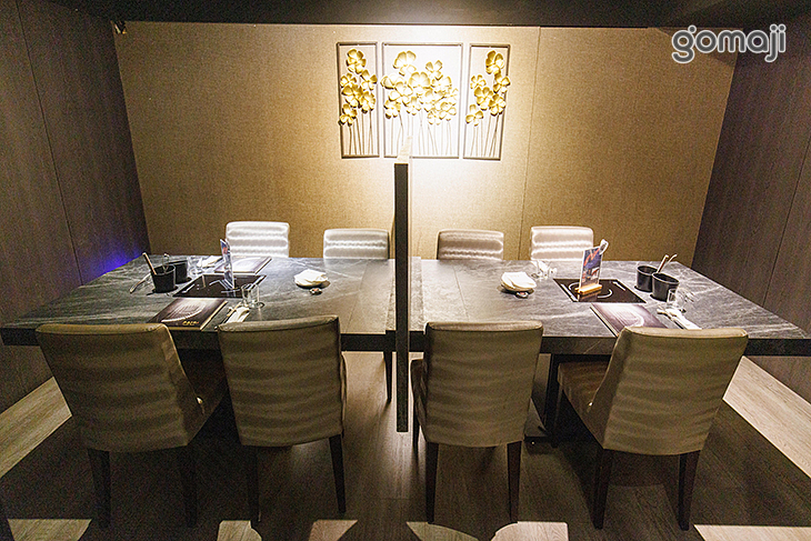 店內嚴選產地直送新鮮食材,精選有機蔬果,美國Prime牛小排等。用餐環境以深色大理石砌成,柔和清透的水晶燈光與悠揚的輕音樂,營造舒適的用餐空間。客座採半開放式的包廂設計,使賓客享用美食之餘亦能保有私人的空間。