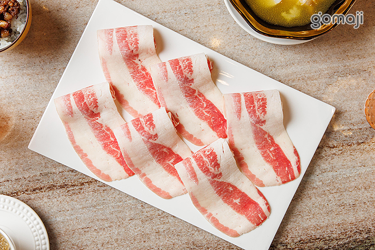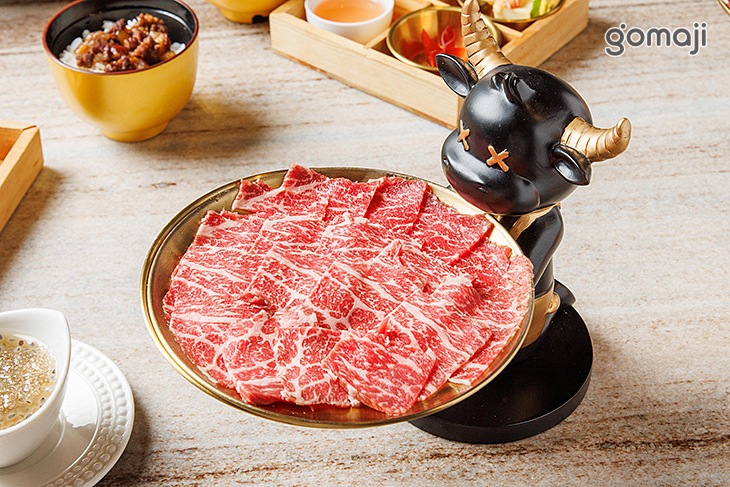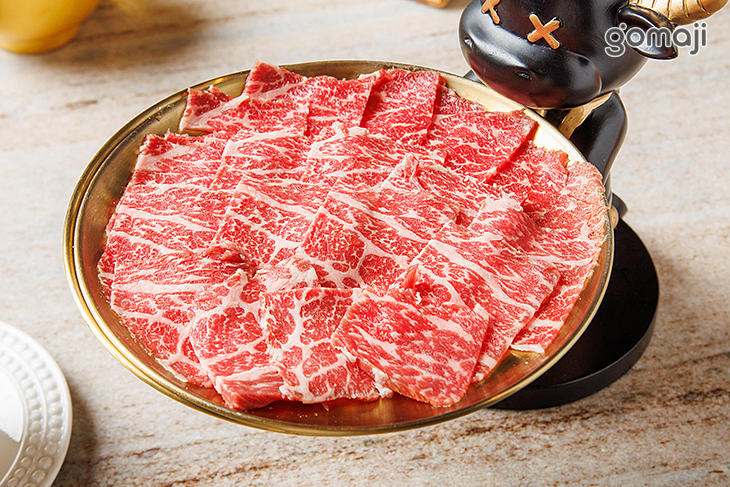 精選總統源興牛,肉質特別細緻柔嫩,一直以來都是美味牛肉的指標,油花分布均勻美麗至極,嚐起來入口即化、鬆軟綿密,香味獨特濃郁更是征服不少饕客挑嘴的胃,肉質會依據脂肪交雜、肉的光澤、肉質緊實度與細緻度分出「肉質等級」,細緻油花,以及軟中帶香的彈性口感,令人著迷不已。