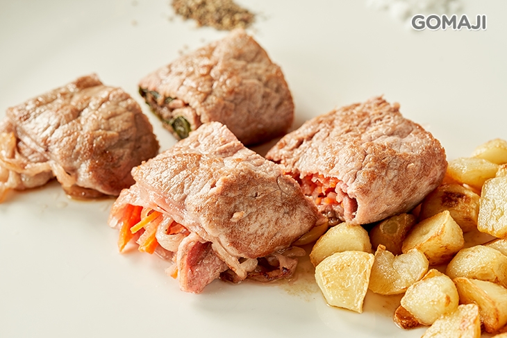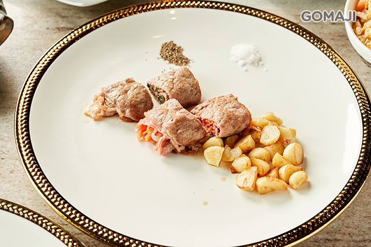 精選美國prime牛肉,恰到好處的熟度保留了牛肉最誘人的口感,在中間包入了時蔬,創造出多層次的清爽口感,每一口都是極致享受!