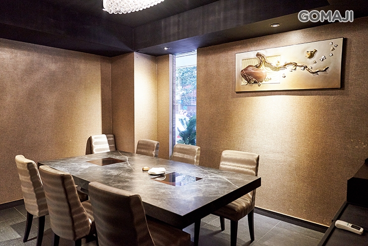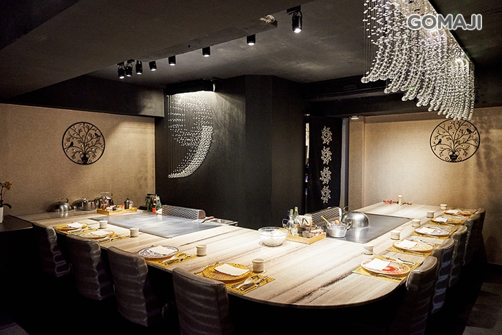 店內嚴選產地直送新鮮食材,精選有機蔬果,美國Prime牛小排等。用餐環境以深色大理石砌成,柔和清透的水晶燈光與悠揚的輕音樂,營造舒適的用餐空間。客座採半開放式的包廂設計,使賓客享用美食之餘亦能保有私人的空間。