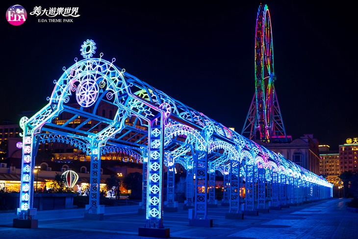 義大123廣場,結合台灣特色小吃、潮流服飾及表演活動,夜晚廣場還有2020全新打造熱門拍照景點「星悅光廊」,非常適合全家人、情侶、朋友一起拍張合照,留下紀念,廣場周邊也有許多不同特色的景觀燈,非常適合拍照打卡唷!