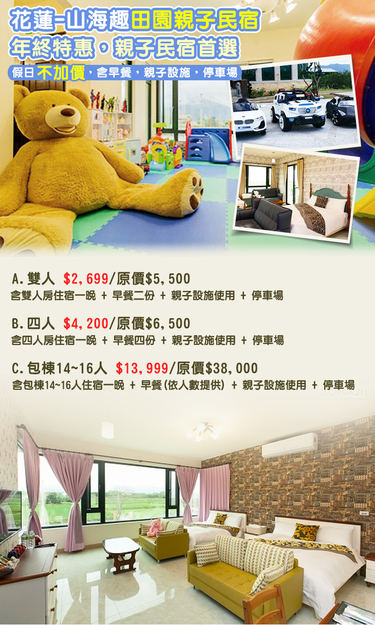 【花蓮-山海趣田園親子民宿】感謝麻吉們熱烈搶購,已全數賣光光。