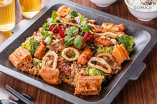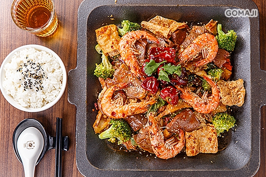 特別從四川引進的原汁原味「乾」式麻辣鍋,請麻吉先自由選擇喜愛的食材,拌入純正中藥秘方煉製的十三香麻辣醬後以大火拌炒,深奧的味道及麻辣的香味撲鼻而來,純正中藥香料與新鮮食材的結合,吃進嘴裡感受獨特的香及爽口的辣,辣度還分成七種不同等級,小小的料理,大大的驚喜!