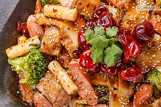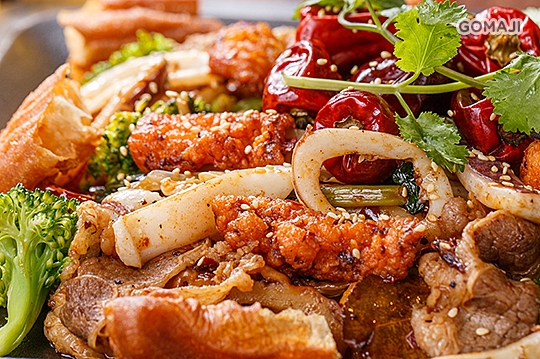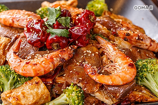 特別從四川引進的原汁原味「乾」式麻辣鍋,請麻吉先自由選擇喜愛的食材,拌入純正中藥秘方煉製的十三香麻辣醬後以大火拌炒,深奧的味道及麻辣的香味撲鼻而來,純正中藥香料與新鮮食材的結合,吃進嘴裡感受獨特的香及爽口的辣,辣度還分成七種不同等級,小小的料理,大大的驚喜!