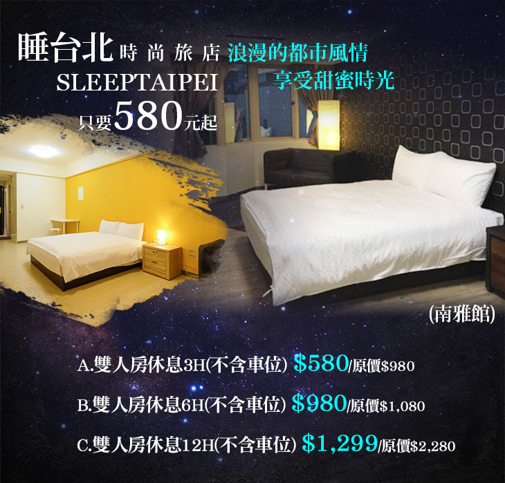 累了想找個地方好好休息卻又不知該去何處嗎?睡台北時尚旅店提供一處休息的好所在,擁有歡愉滿足的好時光。
