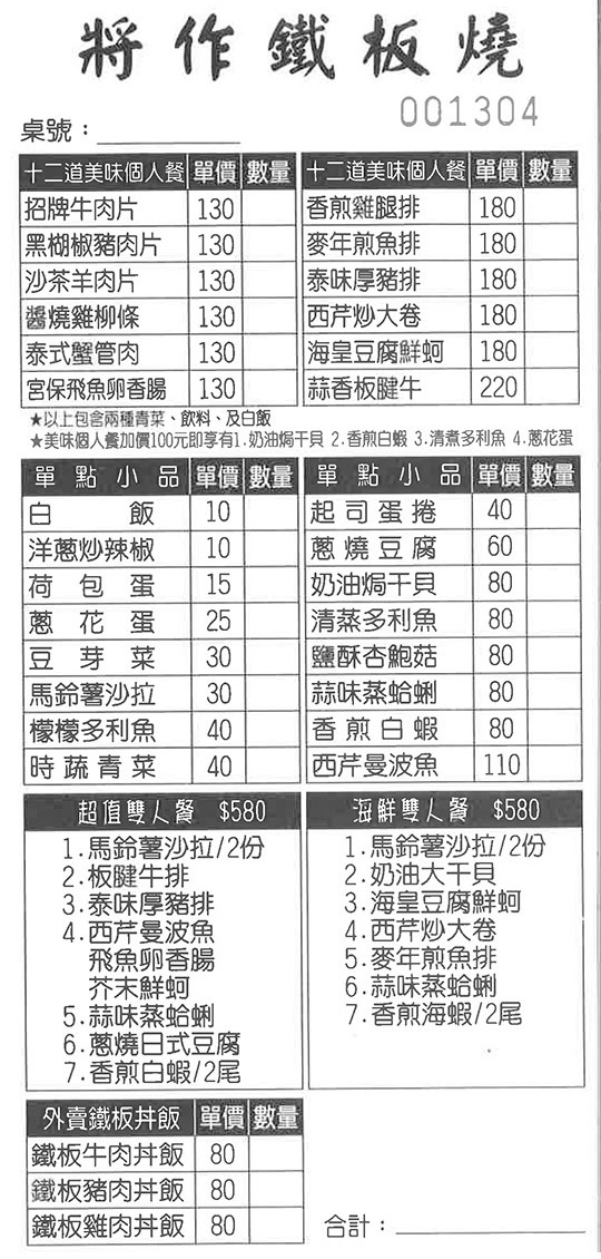 將作鐵板燒=日式料理+西餐風味+台式快炒