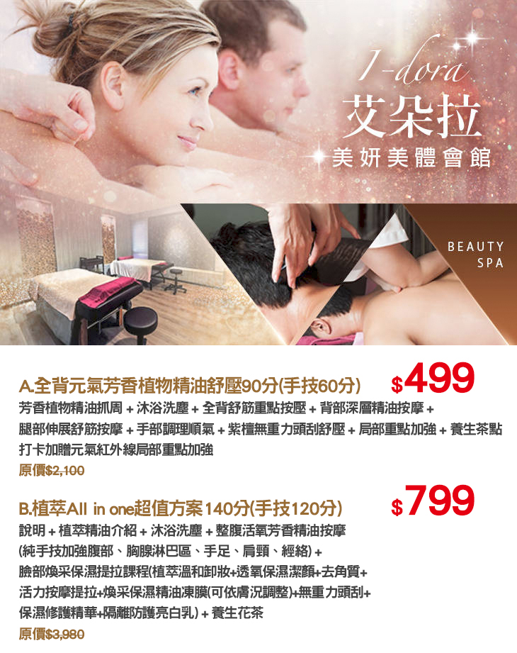 A.全背元氣芳香植物精油舒壓90分(手技60分)