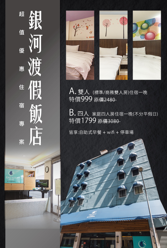 【銀河渡假飯店】坐落於中壢火車站前市中心精華地段,距離中壢車站車程只需5分鐘,飯店建築外觀洋溢著希臘般的風情,一樓外觀以日系風格裝潢設計,飯店的地理位置鄰近中壢車站、SOGO商圈、新明夜市、中壢夜市,可輕鬆享有中壢繁華生活圈。