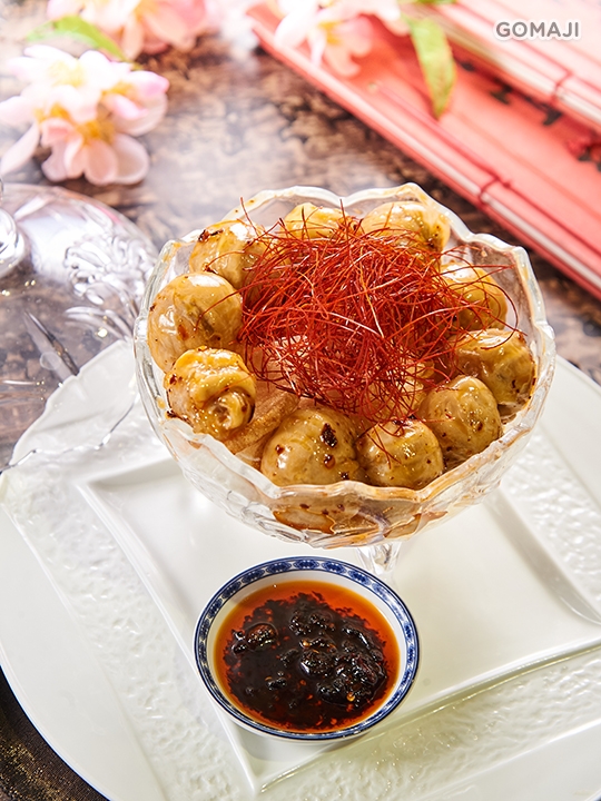 特選雞以鹽水滷製浸泡,肉質紮實軟嫩,口感滑腴多汁,搭配主廚特調芝麻醬與辛香料創造出豐富層次,品嚐後口水直流。初入口甜中帶辣、辣而不嗆;次則香中帶麻,雞肉細滑又嫩!