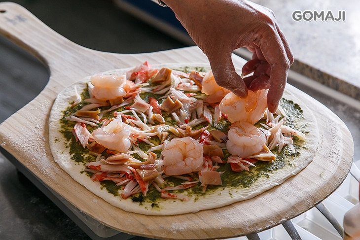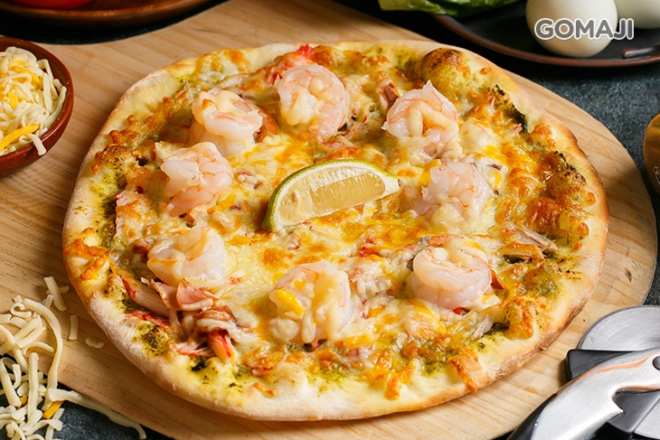 嚴選顆顆飽滿彈牙的蝦仁及豐富的海鮮料,豪爽地將餅皮鋪至滿溢,再放入窯中細心窯烤,帶著海香氣息的海鮮總匯披薩上菜啦!料多實在的佐料,每一口都吃得到海鮮的鮮美與甘甜,怎麼吃都吃不膩,讓人愛不釋口。