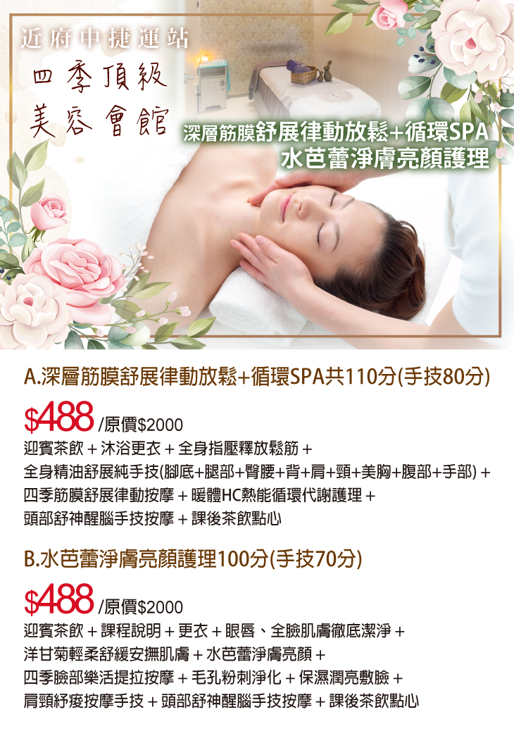A.深層筋膜舒展律動放鬆+循環SPA共110分(手技80分)