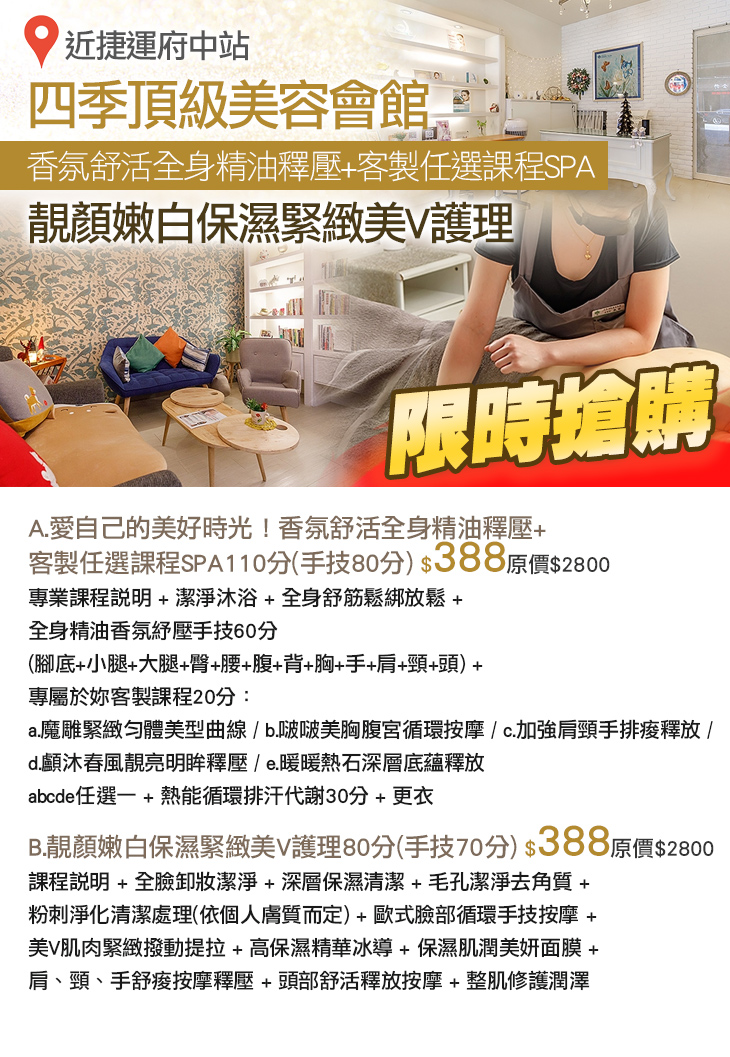 【四季頂級美容會館】感謝麻吉們熱烈搶購,已全數賣光光。