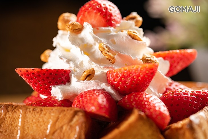 時令新鮮的酸甜草莓,與烤得酥香鬆軟的後片吐司,以及冰心沁涼的綿密冰淇淋和甜而不膩的煉乳、果醬一同入口,各種美味在味蕾不斷交織,甜到心坎裡的好味道讓人忍不住讚嘆:真是幸福!