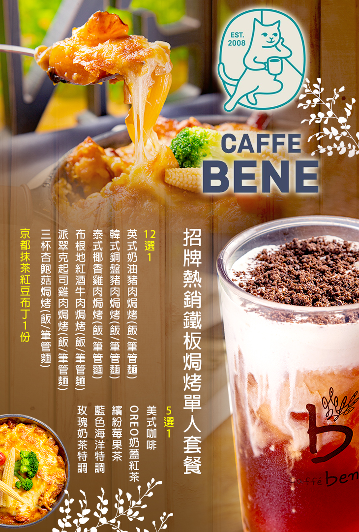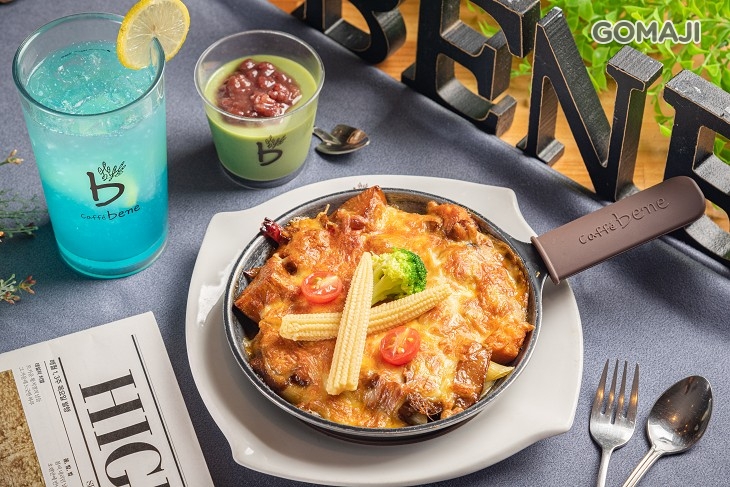鮮美肥嫩的銅盤烤豬,佐入韓式招牌的酸辣入味,再與粒粒白米製成濕潤不爛的香濃燉飯,一品超開胃的餐點便完成了,不過,為了讓它更好吃,【Caffe Bene(高雄文化店)】還會再鋪上滿滿的起司焗烤,讓起司的香滑濃口與原有的酸甜鮮美彼此交織,併發讓人回味無窮的絕品美味!